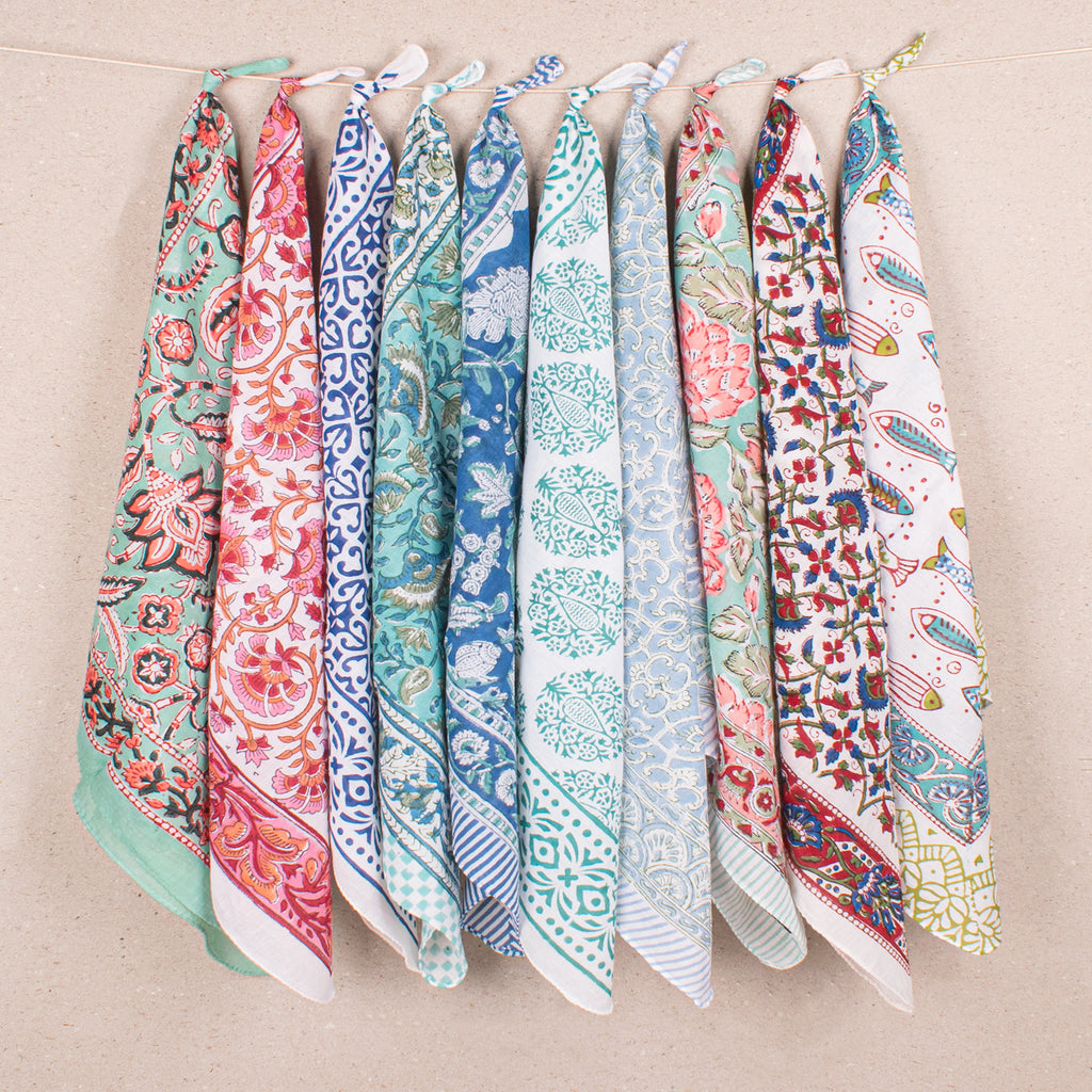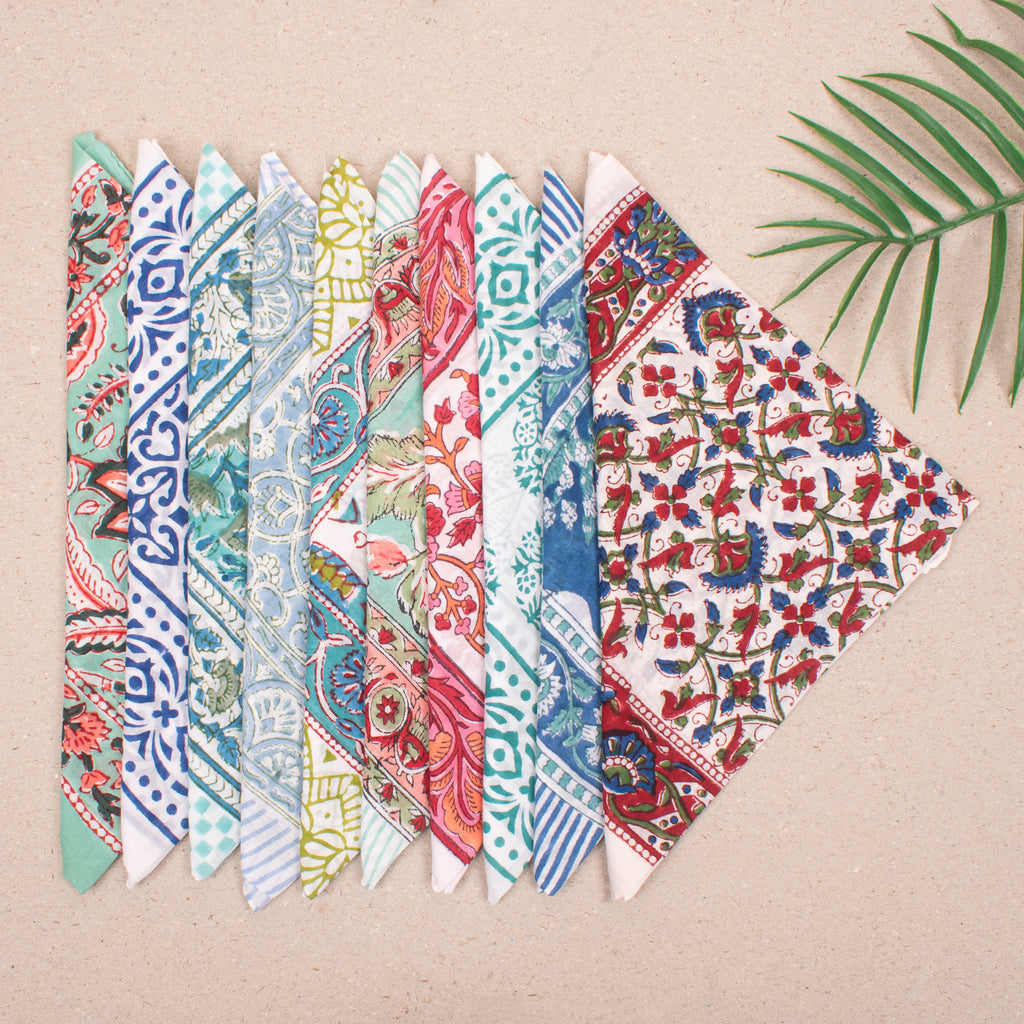 Set of 10 - Cotton Bandana, Hand Block Printed Paisley Scarf, Hair Or Neck Wrap, Boho Sustainable Accessory, Eco-Friendly Fashion Gift